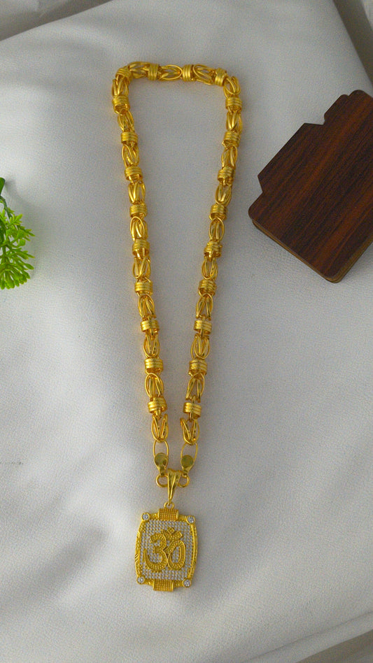 Heavy Gold Plated Om Pendant with 3Line Gold Plated Chain Combo Set.