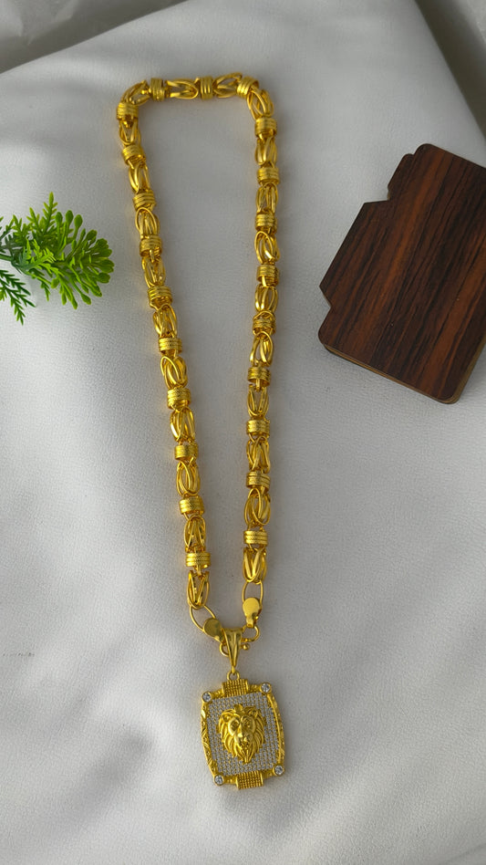 50% DiscountGold Plated Lion Pendant with Rajwadi Chain Combo.